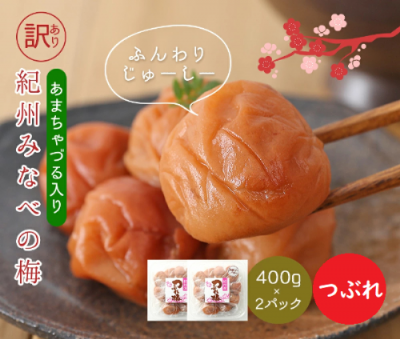 400g×2個入 ※送料600円(北海道・沖縄1,000円) あまちゃづる入みなべの梅 つぶれ梅は、紀州産南高梅を使用しており、やさしい味わいが特徴的です。お得なつぶれ梅は、梅の自然な風味と甘酸っぱさを存分に楽しむことができます。 この商品は、優しい味わいが特徴のため、幅広い年齢層の方におすすめです。梅のつぶれ具合が程よく、食べやすく、おやつやおつまみとして最適です。また、お茶請けやお酒のつまみとしても最適な商品となっております。 朝食やお弁当、おやつのひとときなど、さまざまなシーンでお楽しみいただけます。さっぱりとした甘酸っぱい味わいは、食欲をそそり、リフレッシュ効果も抜群です。お腹の満腹感を得ながらも、爽やかな気分になれる一品です。 <取り扱い注意事項> 直射日光を避け、常温で保管してください。開封後はお早めにお召し上がりください。開封後は冷蔵庫に保存し、なるべく早めに食べ切るようにしてください。お客様のレビュー