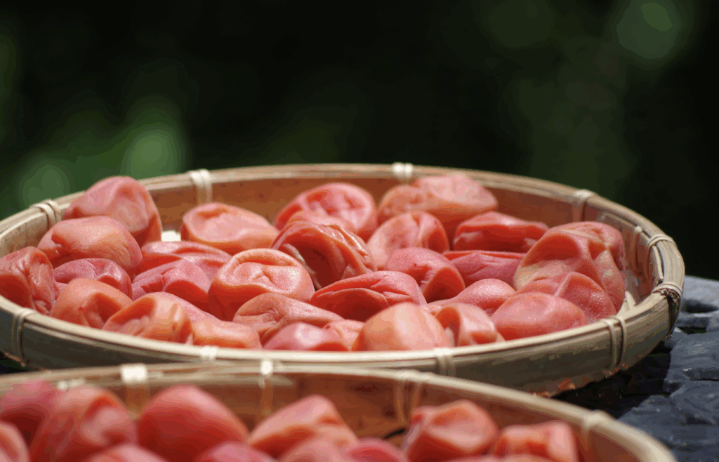 梅干しは日本の伝統的な保存食で、梅を塩漬けにした後、天日で干すことで作られます。